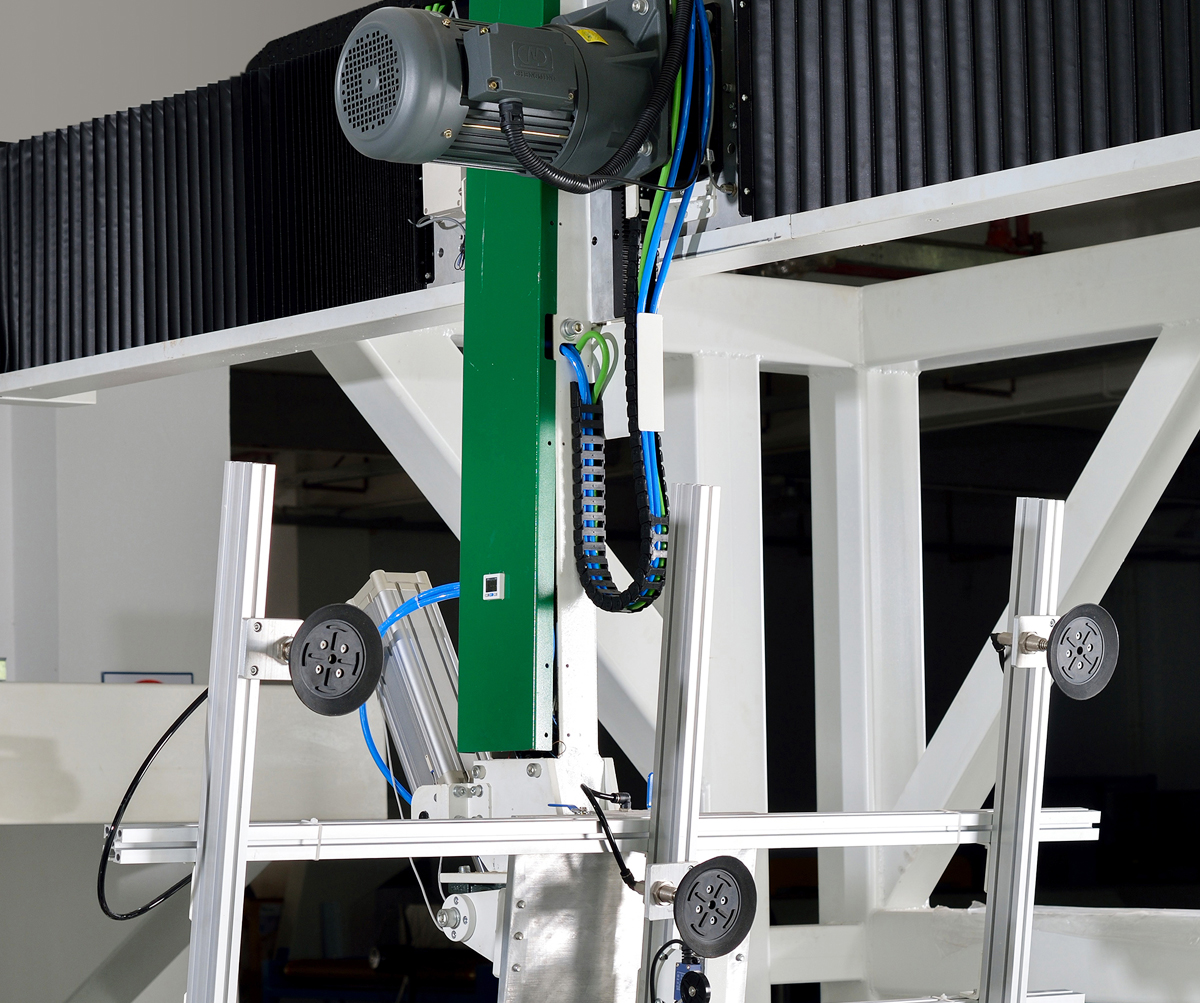 抓臂上片台采用精密直线导轨、真空吸盘,运动平稳,玻璃吸附稳定